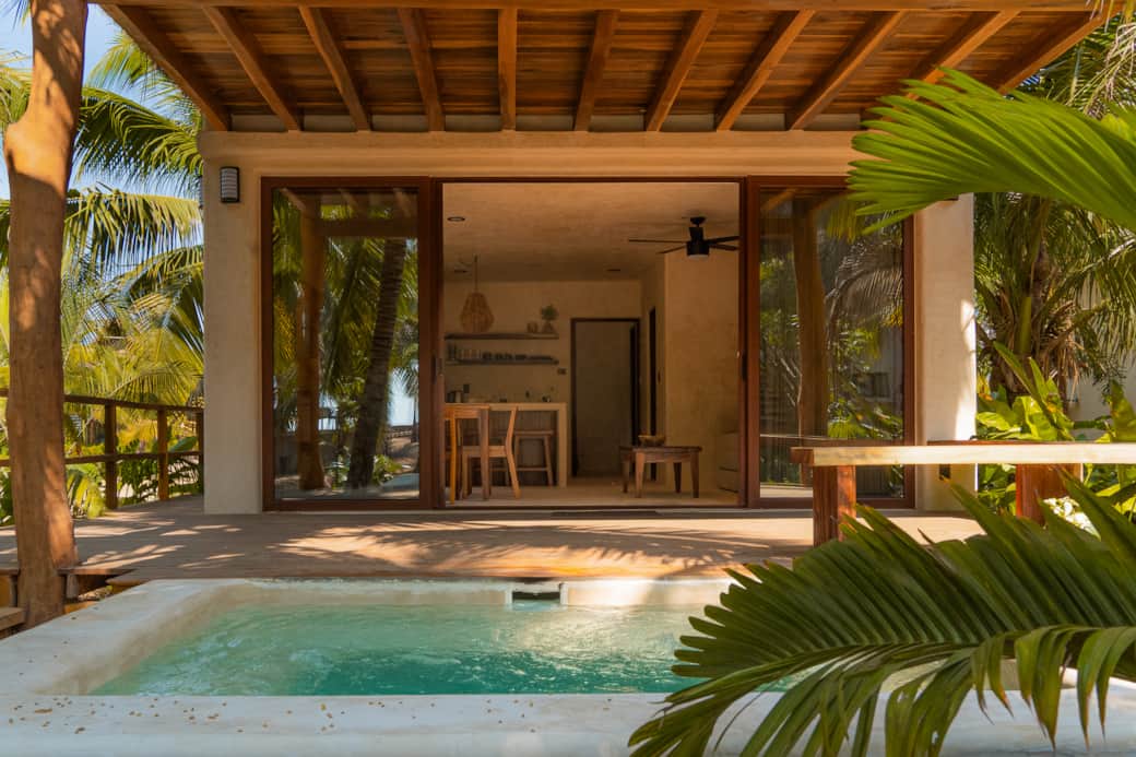 Las cabañas se abren directamente a la playa y a una alberca integrada al paisaje. En Hábitat Nandá se despierta con el sonido del mar, se camina descalzo, se entra y sale del agua sin horarios y se deja que el tiempo fluya sin prisa.